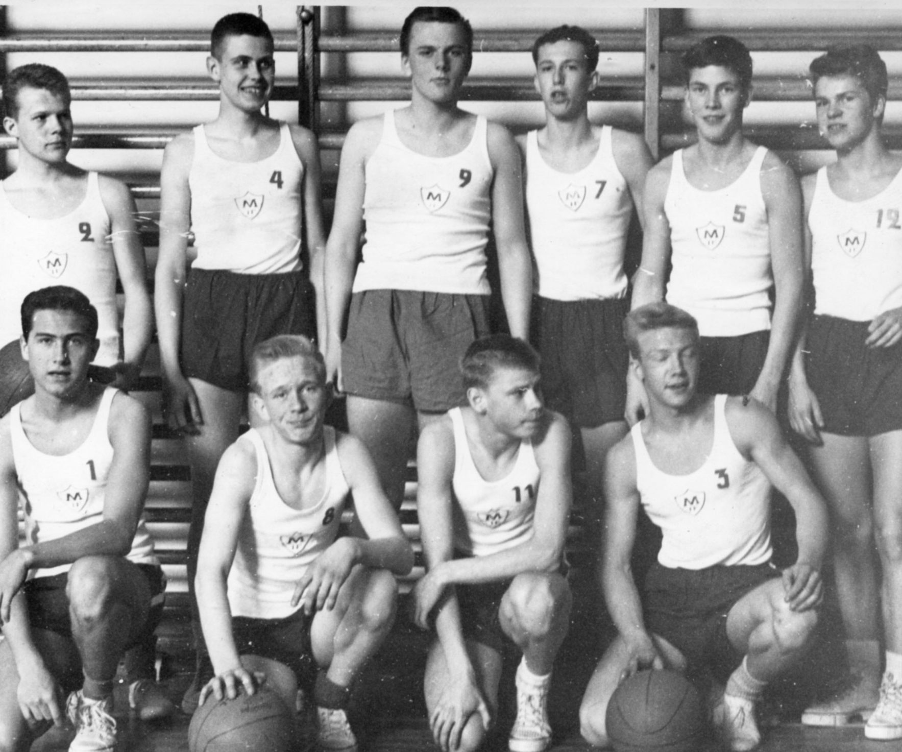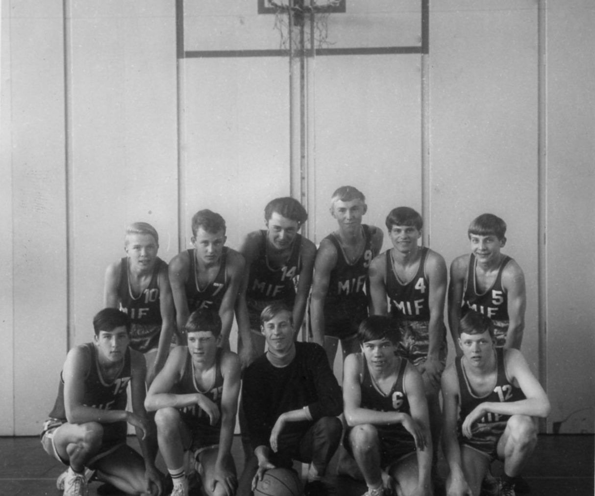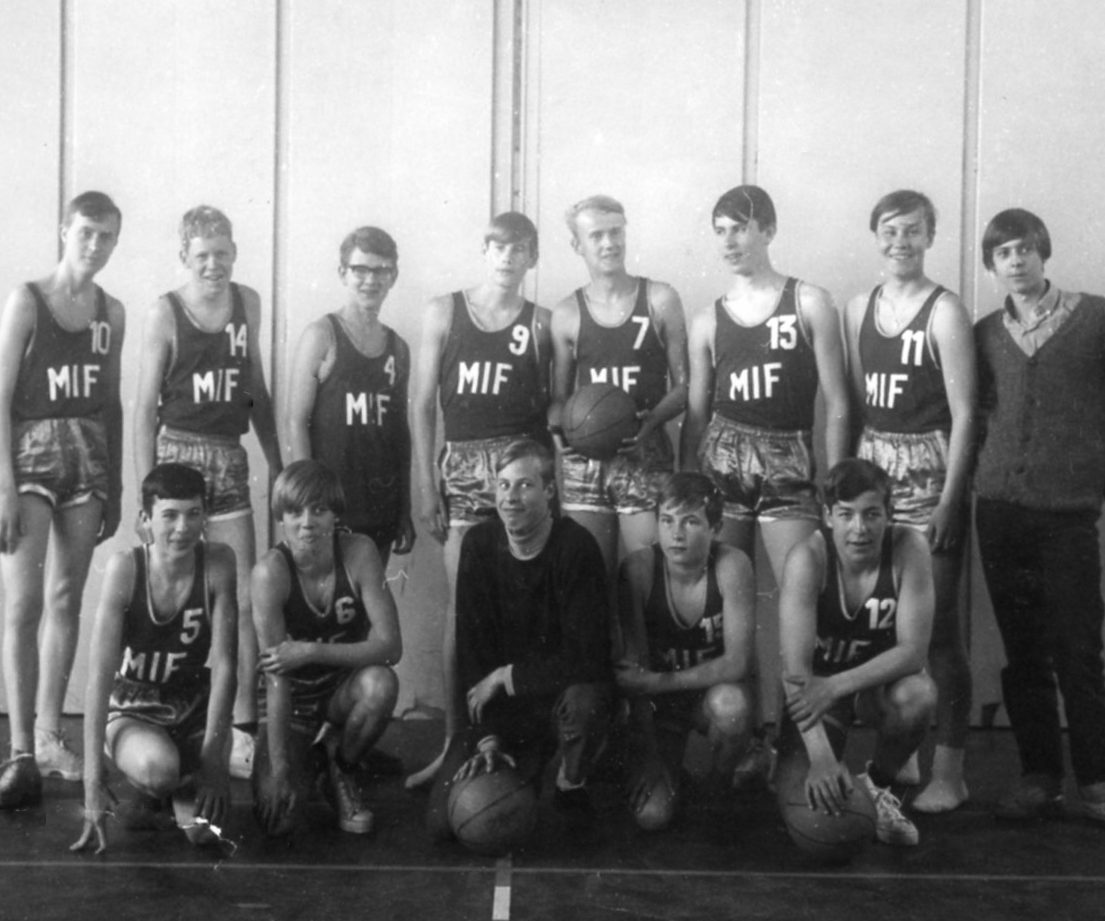 På pojkbilden ses fler av de som senare var med i det första laget som spelade föreningsbasket.