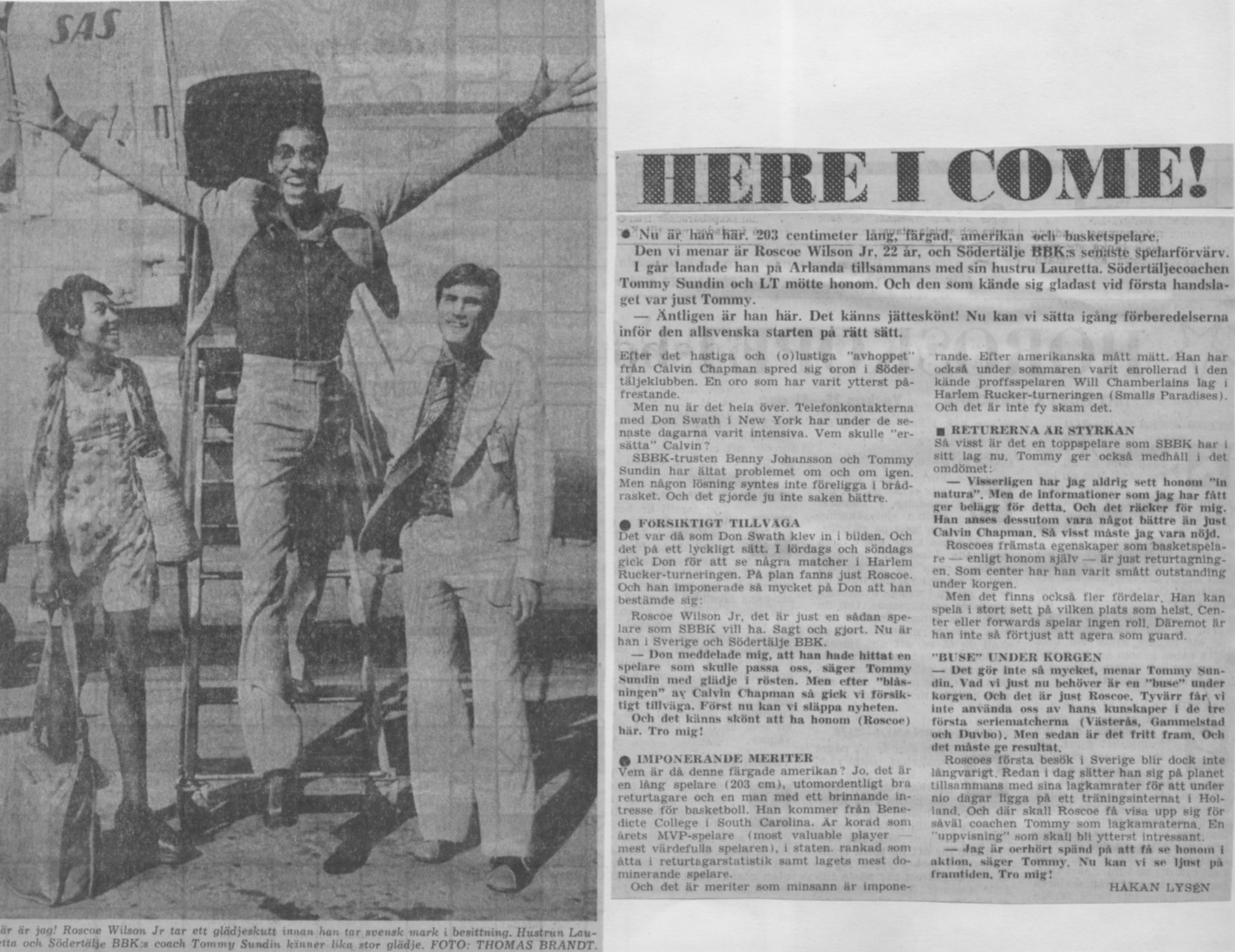 Kris förstås men SBBK hade ju fortfarande bra kontakt med Don Swarth. Han ställde återigen upp för att hjälpa sin gamla klubb. Don gav sig iväg till ett ställe i Harlem där det spelades massor av matcher och där många av spelarna drömde om att få en chans att spela som proffs. Don hittade snabbt en kille som hette Roscoe Wilson och sedan hände allt väldigt snabbt och Roscoe, med fru, var inom kort i Sverige och sin nya klubb SBBK.
